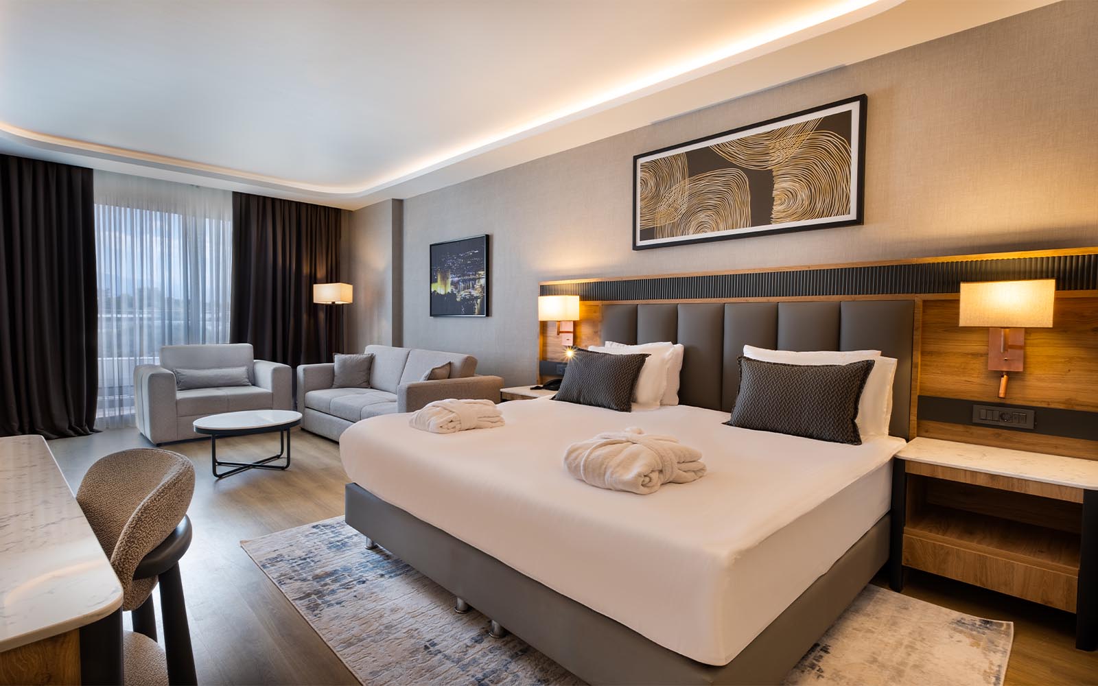 Our Superior Rooms at Wyndham Alanya offer a one-of-a-kind opportunity to experience the breathtaking beauty of Alanya, all from the comfort of your luxurious retreat. Designed with every aspect of 5-star elegance, these rooms feature spacious, comfortable beds for the perfect night’s rest, and cozy seating areas that bring the warmth and comfort of home. Immerse yourself in a harmonious blend of contemporary design and stunning views, ensuring that each stay is not only unforgettable but truly indulgent. With 24 Superior Rooms available, every visit to Wyndham Alanya is an exclusive privilege.