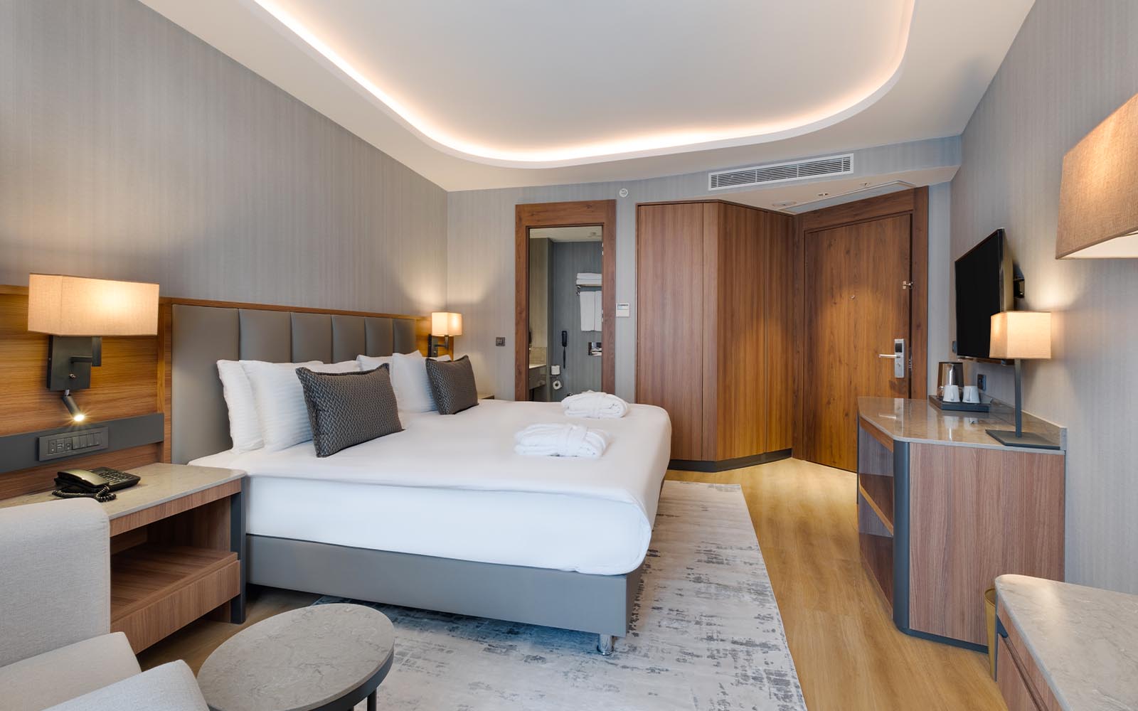 Ferah ve şık dekore edilmiş odalar, doğa ve özel tasarlanmış havuz ve peyzaj tasarımının oluşturduğu huzurlu bir atmosfer sunarken, üstün beklentileri karşılayan özellikleriyle beş yıldızlı otel konforu sağlamaktadır.